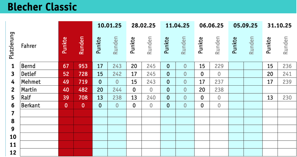 Der Kalender für die Saison 2025