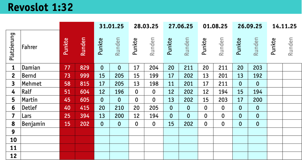 vielen Dank für den tollen Abend und die nette Aufnahme als Gast in eurem Vereinsgelände. Ich habe mich sofort wohl gefühlt und ihr habt mir das Gefühl vermittelt willkommen zu sein. Ich habe den Abend sehr genossen, es ist eine tolle Gemeinschaft mit erfahrenen Slotracer wo man als Anfänger sehr viel lernen kann wenn man möchte. Ich hoffe das zu eurem Rennkalender der aus 1:24 Rennserien besteht auch 1:32 Rennserien aufgenommen werden um ein breiteres Angebot für interessierte Fahrer anzubieten. Ich hoffe, wir werden uns die nächste Zeit öfter sehen, ich freue mich sehr darauf.