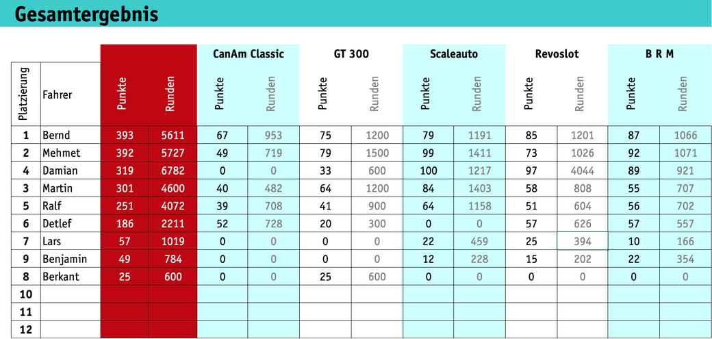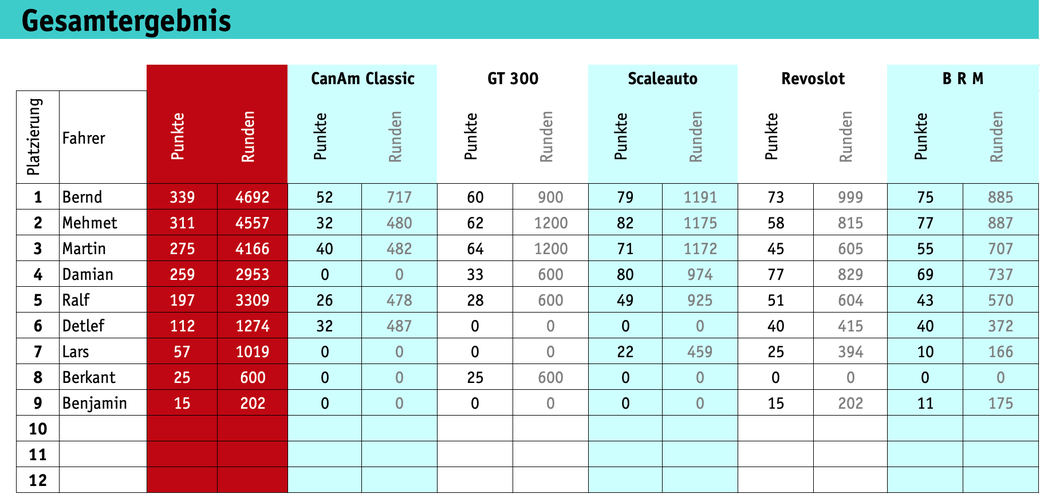 Classics | SFB GT 300 | Scaleauto | Revoslot | BRM | Gesamtergebnis